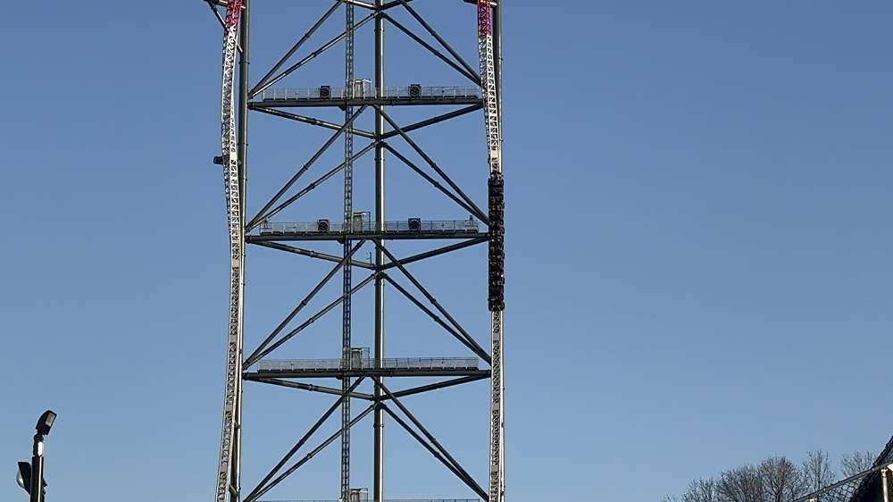 It's completely smooth. There's definitely some lateral shimmy as it gets faster and faster, but it's never uncomfortable. Honestly, at that speed, I was surprised by the smoothness. That backwards launch and pull out reminds me a ton of Wicked Twister, but like a 4x version on it. It's an extraordinary machine. To look right from the back seat at the top rear, and look down on Power Tower, that's something I never thought I'd see.